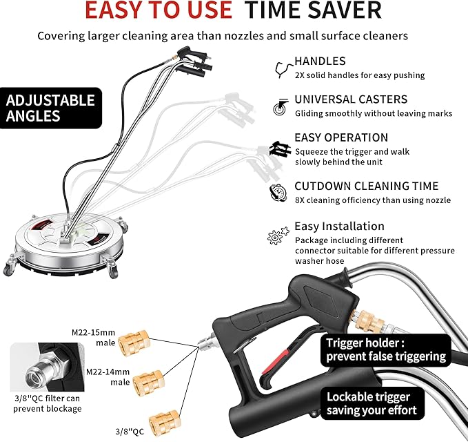 - All-Purpose Cleaning Versatility: Easily convert your pressure washer into a multi-functional tool—perfect for revitalizing concrete, pavers, and other outdoor surfaces with professional-grade results every time.