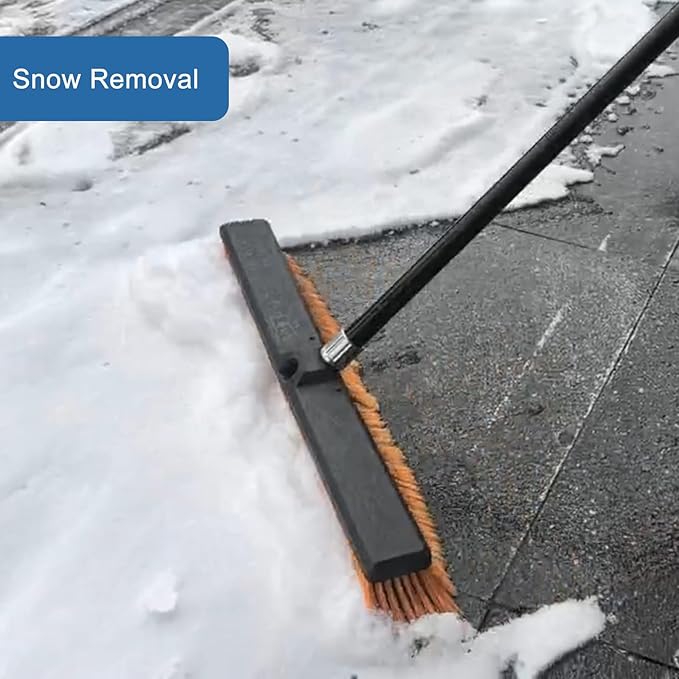 - High Quality Push Broom: Push broom outdoor is of exceptional quality, featuring a durable plastic head and a sturdy steel pole. Push broom brush 24 inch wide. The outdoor push broom has great width for sweeping wide area with a generous amount of bristles