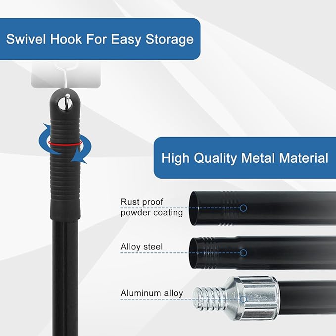 - Easy to Care: The push broom has two handle slot ,can be swapped sides if you find the bristles are wearing unevenly. It has a protective jacket on its iron pole, and it is soft. The push broom Handle with a diameter of 2.5cm and a wall thickness of 0.5mm. It is can withstand heavy-duty use and will last for years to come