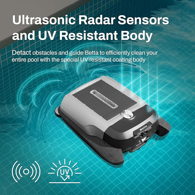 - Automatic Pool Skimming Made Easy – Betta Flex glides across your pool surface day and night, automatically collecting leaves, flower petals, pollen, and other debris—keeping your water crystal clear without lifting a finger.