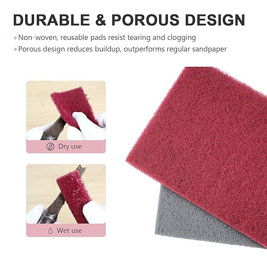 - 【BOX OF 8+8】Premium quality General Purpose Maroon Scuffing Pads, High-performance maroon with 320&800 grit general-purpose scuffing pads that deliver a very fine aluminum oxide abrasive cut comparable to about a P800&P320 grit sand paper cut and perform exceptionally well on flat, contoured, or hard-reach surface areas.