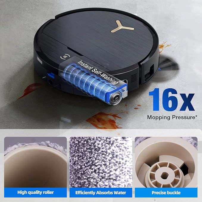 - 🏆【Main Brush and Sidebrush】Roller brush selected from high quality ABS rubber, cleans dirt efficiently, cleaning comb in the main brush tank to achieve 0% tangled hair. Robotic Arm Side brush can reach deep into the corners to remove rubbish, ensuring a clean living environment.