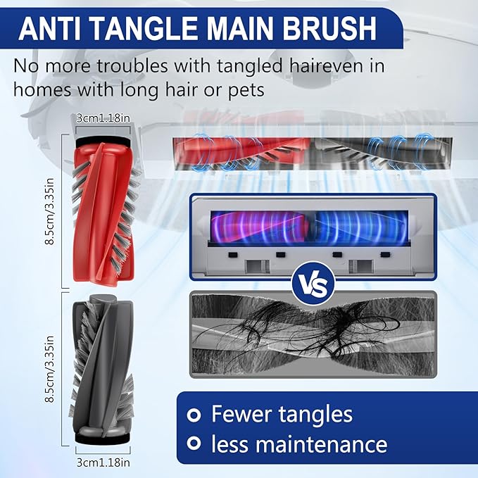 - 【High-Quality Brush】The main roller brush and side brushes are made of high-quality rubber and nylon bristles, which are soft and durable. Suitable for all kinds of floors, effectively cleaning stains and fine dust on the floor and corners without scratching the floor. The main roller brush is adjustable, rotatable and removable, which is very convenient for cleaning