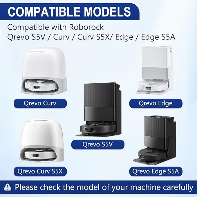 - 【Compatible Models】These replacement accessories work are compatible with Roborock Qrevo Curv/Curv S5X/Qrevo Edge/Edge S5A/Qrevo S5V Robot Vacuum Cleaner. They perform just as well as the original parts. Please check your model before buying.NOTE: These replacement parts DO NOT fit for Other Qrevo Vacuum Cleaner!