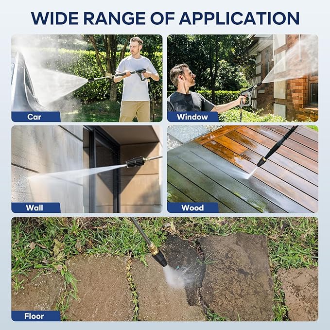 - Professional Level Clean: This nozzle's wide, circular spray turns hours of tedious work into a fast, satisfying job. Cover large areas like driveways and fences in a fraction of the time. It's powerful enough for stripping grime from concrete, yet versatile enough to safely clean large surfaces, outdoor furniture, boats, and more. Simplify your toolkit and get a professional-level clean on virtually any surface around your home.