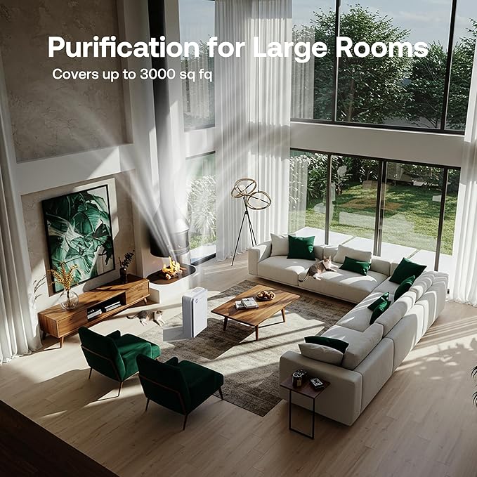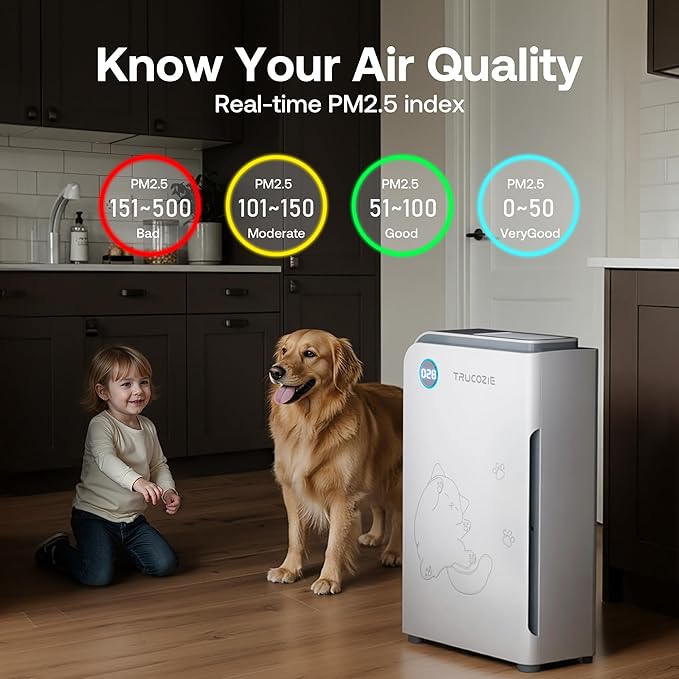 Trucozie Large Pet Air Purifier for Home up to 3000 Ft², Absorbs Floating Cat and Dog Hair, Smart WiFi, 3-in-1 Filter with Anion, Activated Carbon & HEPA for Pet Allergy, Smoke, Dust, Zero Ozone