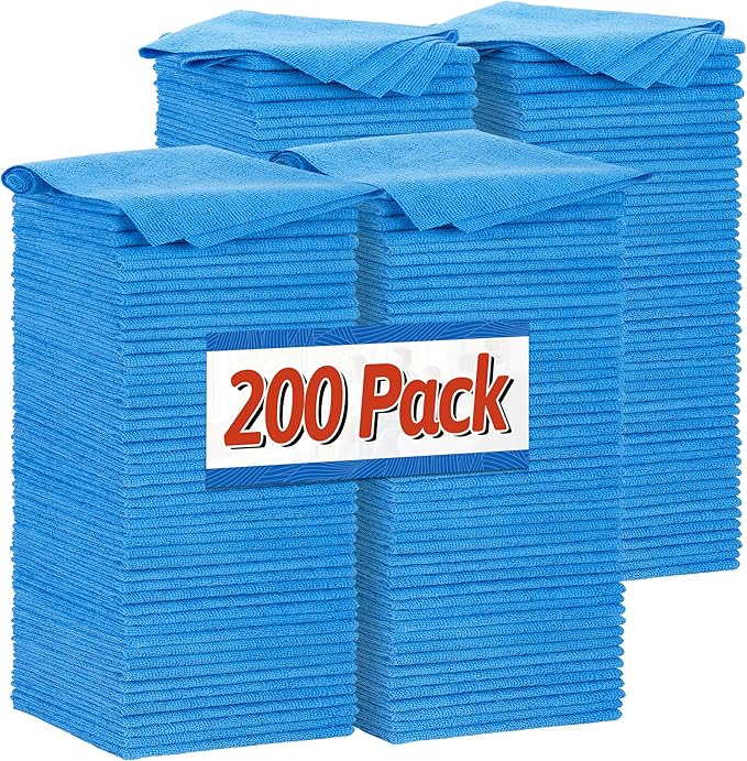 FIXSMITH Shop Towels, Microfiber Cleaning Cloth Bulk, 200 Pack Microfiber Towels for Cars, All-Purpose Absorbent Cleaning Rags, Dust Cloth for Automotive, Mechanic, Garage, Bar, 11.5 x 11.5 inch