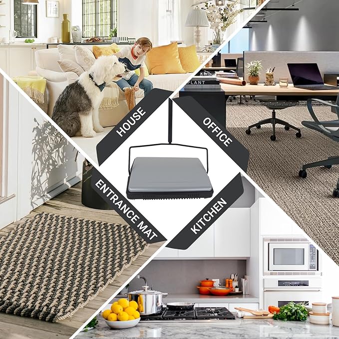 - Works on: Wood, Linoleum,more suitable for carpet and rug. with NO scuffing or scratching.These three horsehair bristle brushes have fabulous picks up power for pet hair, crumbs, dust, debris, paper clips, glass and more. Easily dump garbage by holding on the push button.