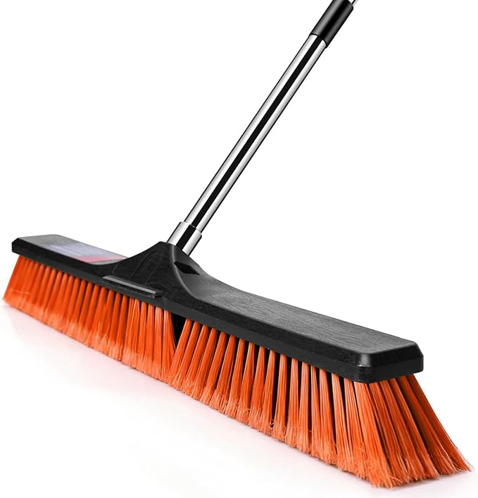 24" Push Broom, Heavy Duty Outdoor Commercial Broom for Cleaning with 55" Long Handle and Stiff Bristles, for Driveway Garage Yard Patio Warehouse Concrete Floor Cleaning,Orange