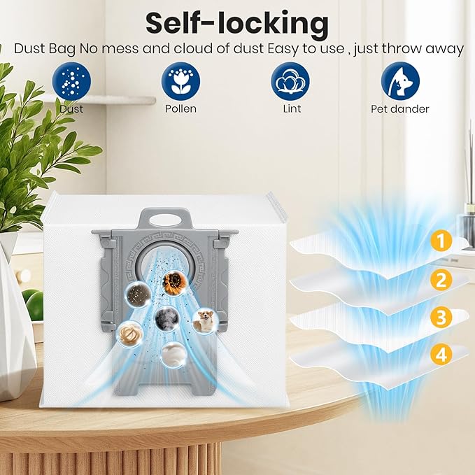 - 【Efficient Dust Bag】The Dust Bags Replacement of this replacement its durability and long-lasting performance. It's designed to withstand heavy use, without clogging or losing suction power over time. To keep your robot running at peak performance, the bags are recommended to be replaced every 1-2 months.