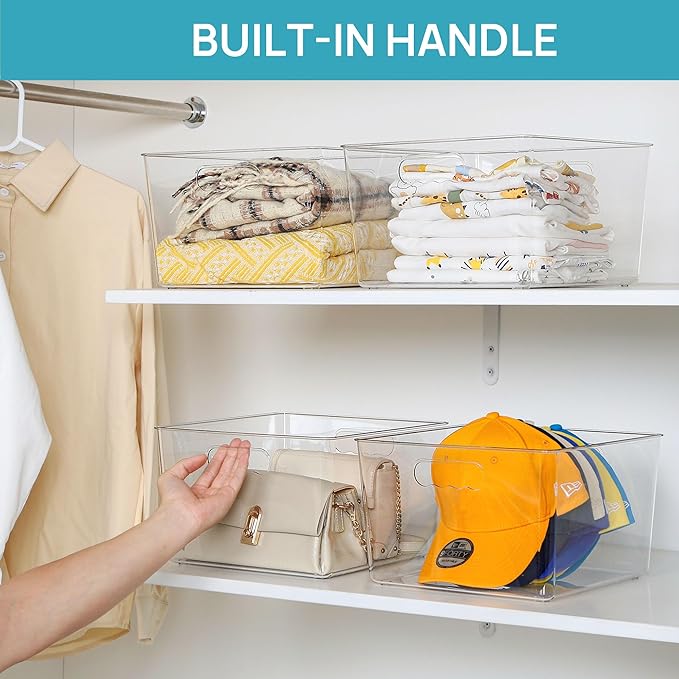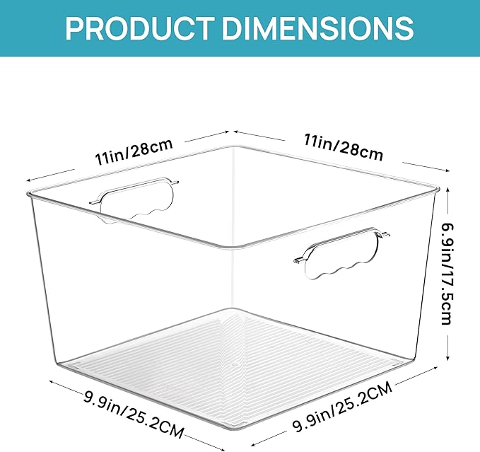 Vtopmart 10 Pack Extra Large Clear Plastic Storage Bins,11x11 Cube Acrylic Organizer Square Containers with Handle for Pantry,Closet,LaundryRoom,Kitchen,Bathroom,UnderSink Organization