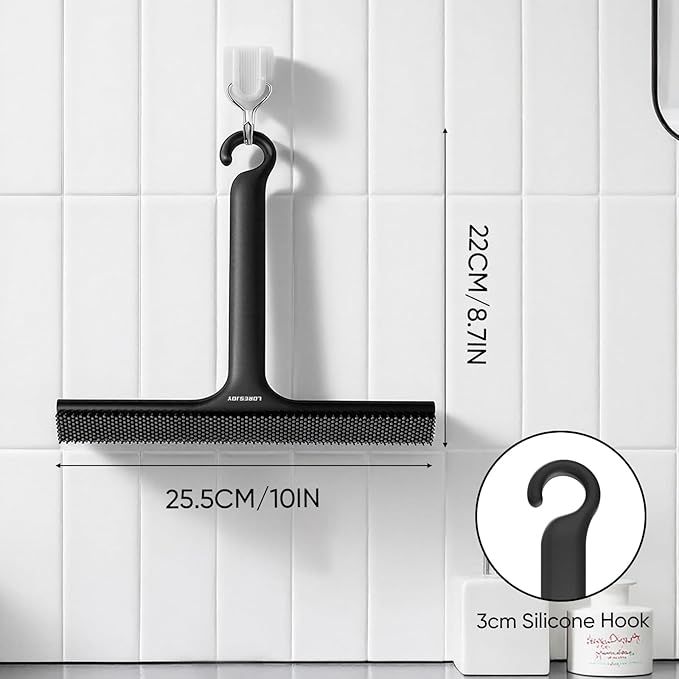 - 【DOUBLE-SIDED SHOWER SQUEEGEE】For glass doors features one side for streak-free water removal and the other for cleaning hair or pet fur, ideal for bathroom and glass cleaning