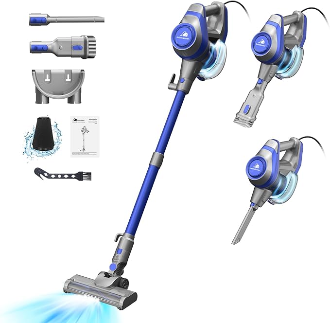 Intercleaner 23Ft Corded Vacuum Cleaner, with LED Headlights & Large Dust Cup, Powerful Suction for Hard Floors & Carpets, Adjustable Stick, Perfect for Pet Hair, Wall Mount Storage