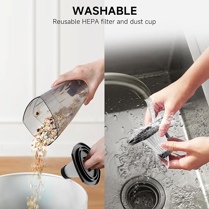 - 【18KPA Power Suction】This corded vacuum cleaner comes with a 450W low-noise motor and a simple one-touch mode. It effortlessly tackles debris and other messes. The handheld vacuum cleans quietly minimizing disturbance to your family and pets.