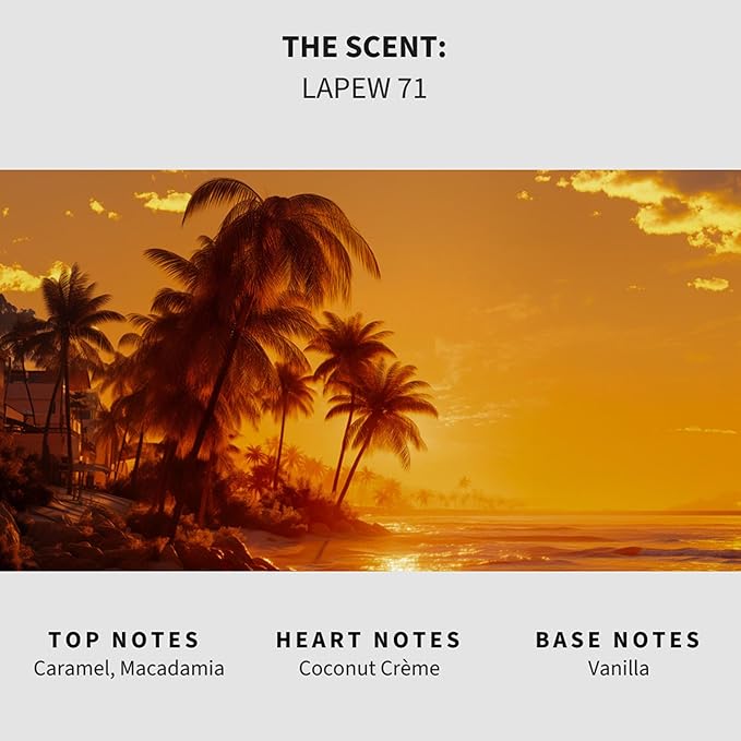 - Smells like: Caramel and macadamia softened by creamy coconut crème, settling into a warm base of vanilla for a rich, sun-kissed gourmand fragrance.