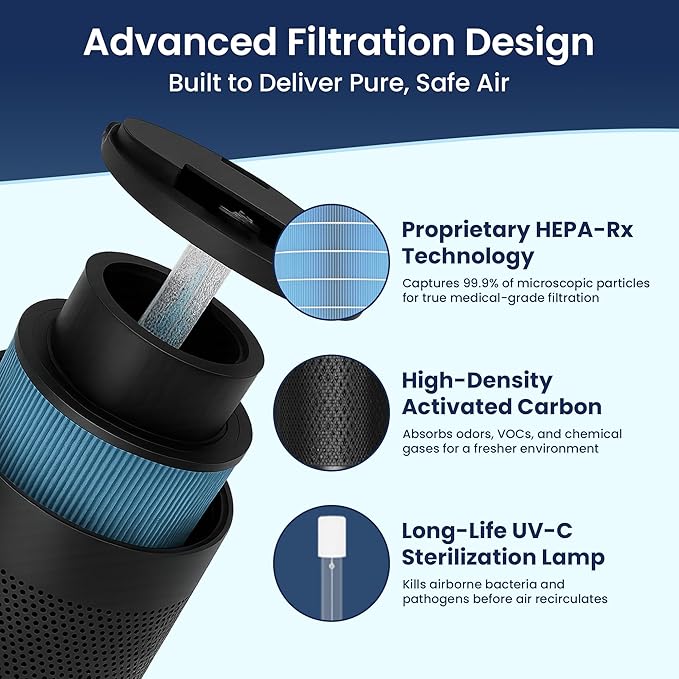 - Whisper Quiet Air Purifiers for Bedroom: get a peaceful night's rest without the annoying sound, this living room air purifier delivers as low as 35 dBA at the lowest mode and 51 dBa noise at maximum turbo mode, creating a peaceful setting with clean air