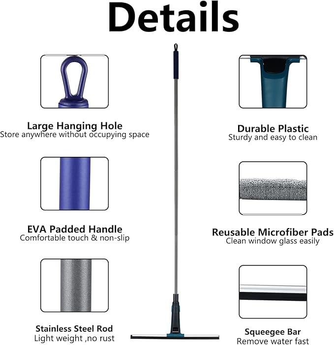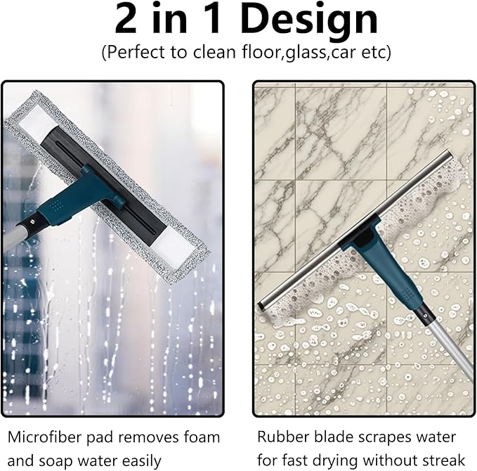 - DUAL-PURPOSE FLOOR & WINDOW CLEANER: This professional squeegee with a durable recycled handle works equally well on tile, concrete, and marble floors, as well as high windows, car glass, doors, and other surfaces