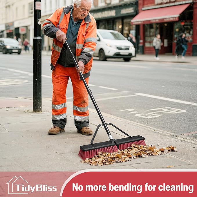 - Maximize Efficiency with 24” Wide Broom: Featuring an 24-inch commercial broom head, this push broom indoor delivers maximum surface contact per stroke. The hard bristle broom efficiently sweeps away dirt, accelerating cleanup tasks