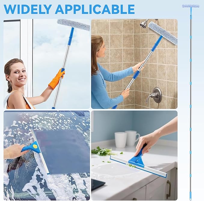- 【3m Telescopic Pole Reach】Stainless steel extension handle cleans high windows & skylights effortlessly. Adjustable from compact to 3m for hard-to-reach glass.