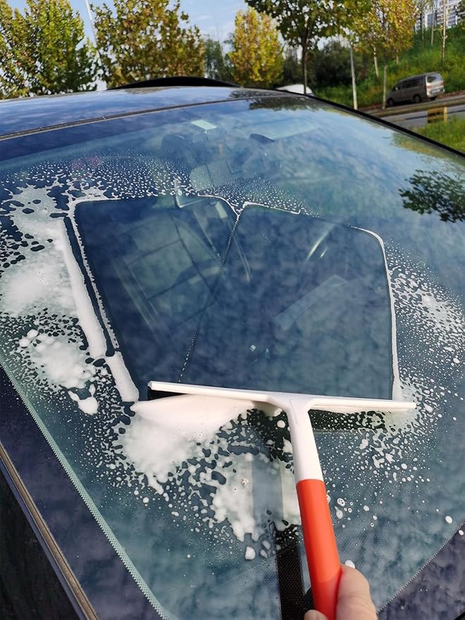- Silicone Blade Features a flexible silicone blade that glides smoothly across surfaces, removing water with ease for a streak-free shine.