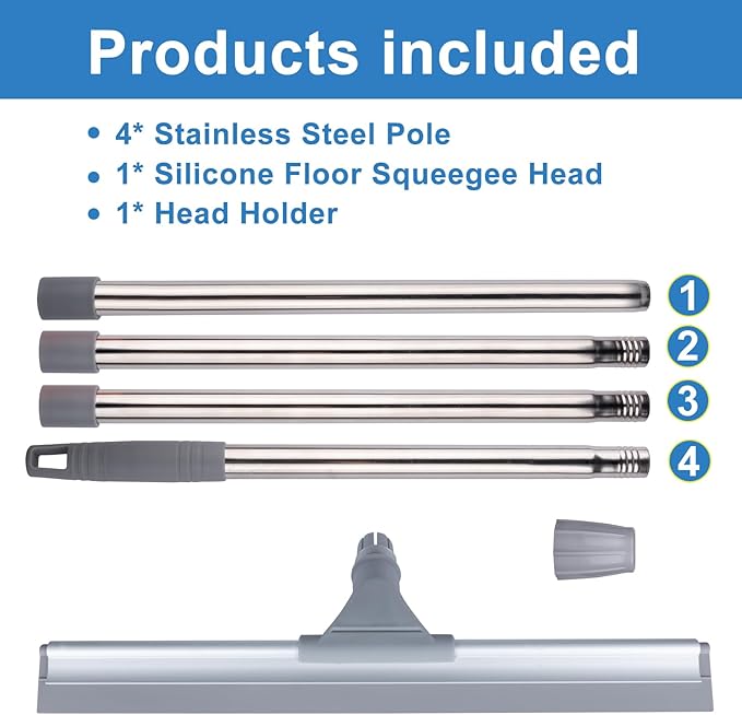 - Excellent Seller & Customer Service: You can receive 1 * 17.3" floor squeegee, 4 * stainless steel pole when the long handle squeegee mop arrived. In addition to, ITTAHO would like to provide you a wonderful shopping experience. Please feel free to contact us if you have any doubts or concerns. Rest assured that your inquiry will be answered within 24 hours