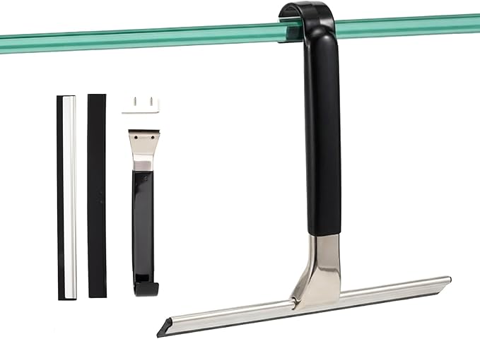 10" Wide Stainless Steel All-Purpose Shower Squeegee for Glass Doors, Shower Glass Squeegee with Hook, Squeegee for Shower Glass, Tile, Bathroom, Car Glass, Mirror
