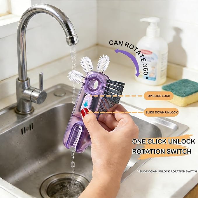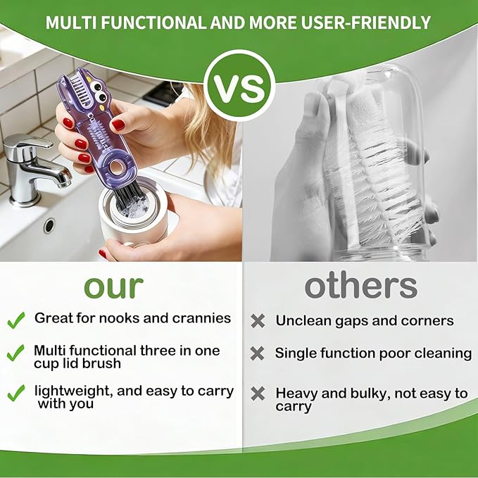 - Wide Application - The cup lid cleaning brush tool is lightweight and easy to carry. This bottle brush head can rotate 180 degrees to use different brushes, which is convenient to clean crevice. Mini and multifunctional make it very convenient for you to use.