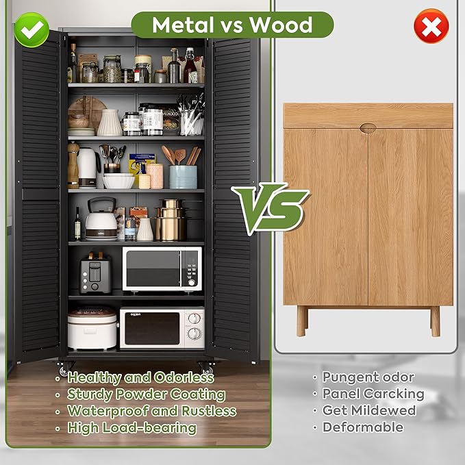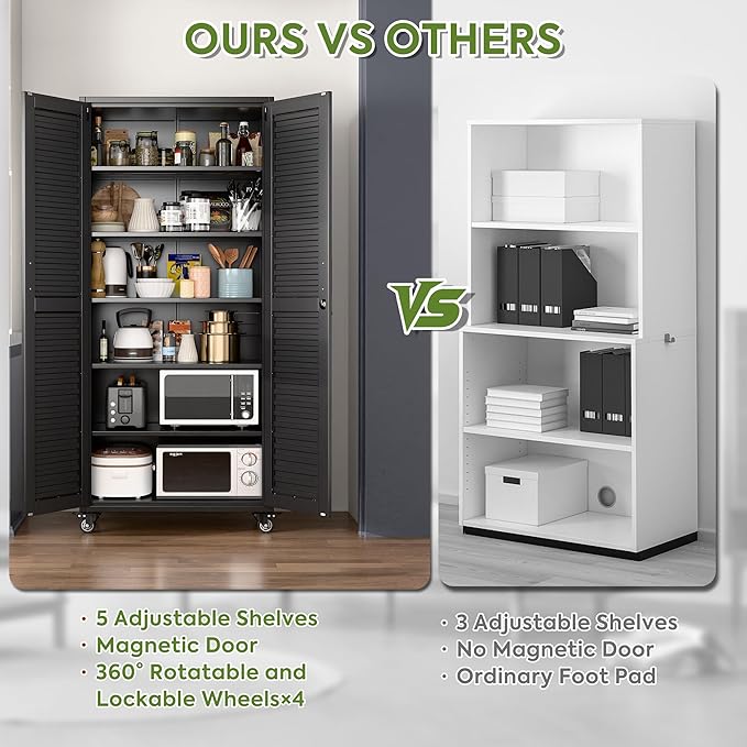- Louvered Door Design: Metal cabinets feature louvered doors with inset magnetic doors and stylish handles, making the door easy to open and close.