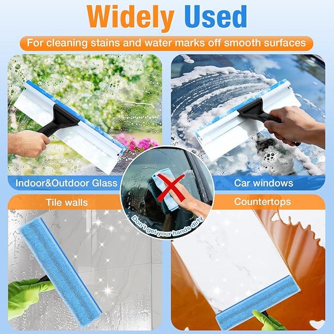 - 🌲【Professional Streak-free Cleaning】:Squeegee for window cleaning has highly absorbent microfiber cloth effectively holds and distributes water and foam, easily removing dirt and dust from surfaces. The flexible rubber blade conforms tightly to the surface, easily removing water stains and foam for streak-free cleaning.