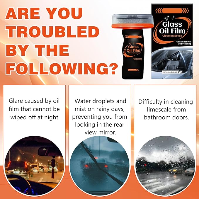 - Powerful Oil Film & Stain Removal: Emulsion formula with mild abrasives and non-ionic surfactants penetrates and breaks down stubborn oil film, road grime, insect marks, bird droppings, tree sap and rain stains. Deeply cleans glass without damage, restoring crystal-clear transparency