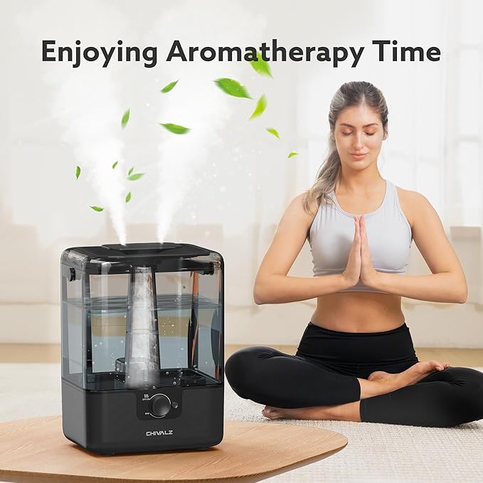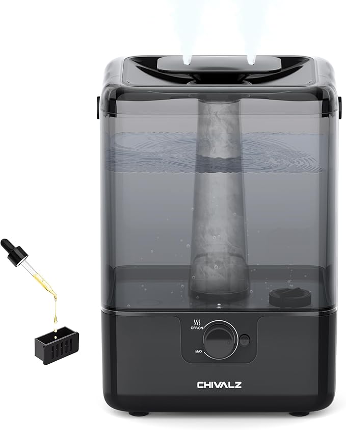 CHIVALZ Humidifiers for Bedroom Large Room Home, 6L Cool Mist Humidifier for Baby and Plant, Oil Diffuser, Top Fill Humidifier with Night Light, Quiet 23dB, Up to 26H, Black 1Pack